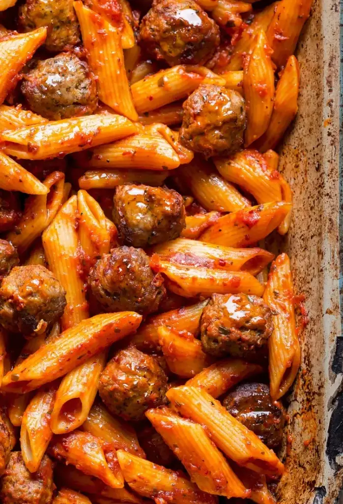 - I love to Sprinkle Tuscan seasoning, salt, and pepper on top of the pasta and meatballs, Also you can Drizzle a little bit of olive oil on top if you want, Move the pasta and meatballs to a big serving dish and Enjoy.