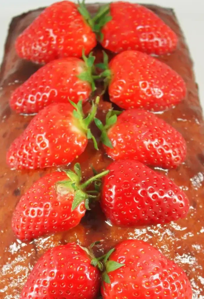minutesA beautiful cake with a moist brown base, topped with a glossy strawberry glaze and decorated with fresh strawberry slices. Perfect for the holidays.